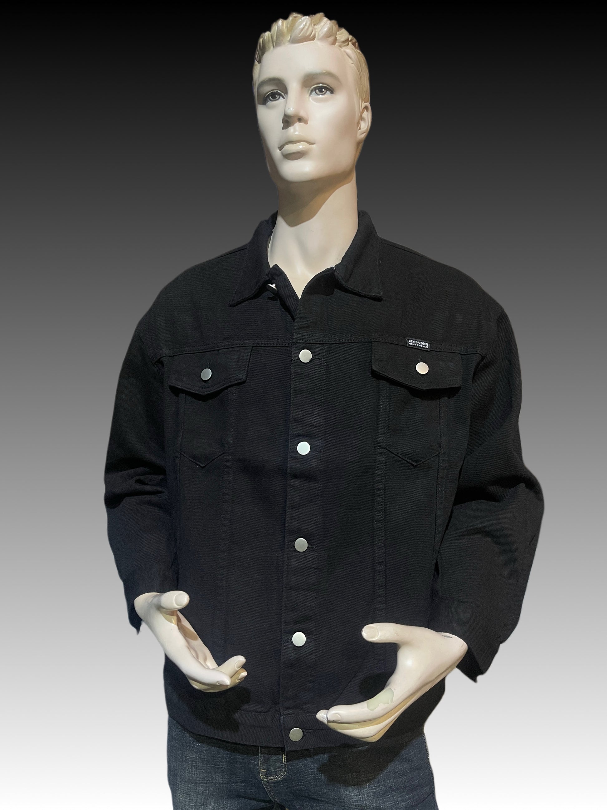 Free size black jeans jacket with removable topi